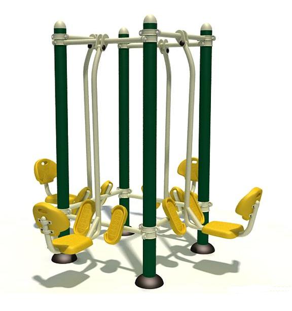功能:主要用來鍛煉腰部和下肢的力量。 禁忌:有關節(jié)疾病者不宜使用蹬腿器。 有的老人平時常有膝關節(jié)痛、上下樓梯覺得腿腳無力等癥狀,以為用蹬腿器鍛煉一下,就能增強腿部力量。然而,有以上癥狀的老人很可能患有髖骨軟化癥,本來髖關節(jié)的負重功能就不好,再用運動強度較大的蹬腿器,很容易損傷伸膝肌群,反而加重原有癥狀。 5.健騎機