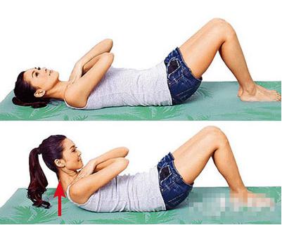 動(dòng)作1 仰躺姿,雙手相互交叉放胸前,雙膝併攏并屈膝。 動(dòng)作2 靠腹部力量抬上半身,下背貼地,回動(dòng)作1,重復(fù)15次為1回,做4回。