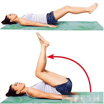 動(dòng)作1 仰躺姿,雙手自然平放身體兩側(cè),雙腿離地,小腿盡量保持水平狀態(tài)。 動(dòng)作2 利用腹部力量將臀部抬起,使雙膝盡量貼近胸部。動(dòng)作1~2重復(fù)15次為1回,重復(fù)約4回。