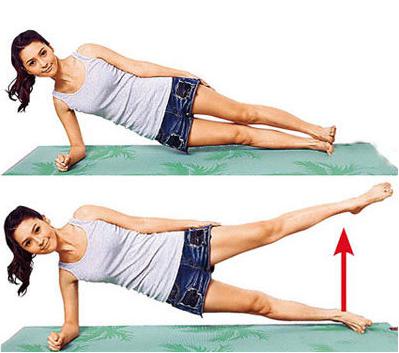 動(dòng)作1 先採(cǎi)側(cè)身平躺,以右手前臂撐地,使膝蓋以上部位離地,讓身體呈現(xiàn)一斜直線。 動(dòng)作2 身體不動(dòng),左腳側(cè)抬,使兩腳間距離大于肩寬。動(dòng)作1~2來(lái)回20下后換邊做為1回,可重復(fù)2回。