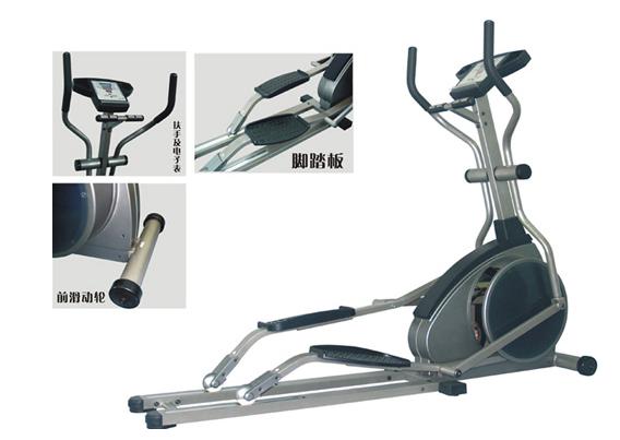 橢圈機(jī)堪稱平衡能力的校正儀 讓你在跑步與步行中擁有優(yōu)雅身姿 橢圓機(jī)初聽起來似乎是一種科學(xué)裝置或繪圖儀器.實(shí)際上它是一種有氧健身器材。其外觀可以形容成一輛站著騎的自行車,但車把是豎起來的.井且可以前后運(yùn)動(dòng).它沒有坐椅,一左一右兩個(gè)腳踏板取代了腳蹬.也沒有車鏈和車條.也就不會有車輪.像跑步機(jī)和登山機(jī)一樣,最前端也設(shè)置有操作面板. 圖2-4-6所示就是一種橢圓機(jī)的外形。